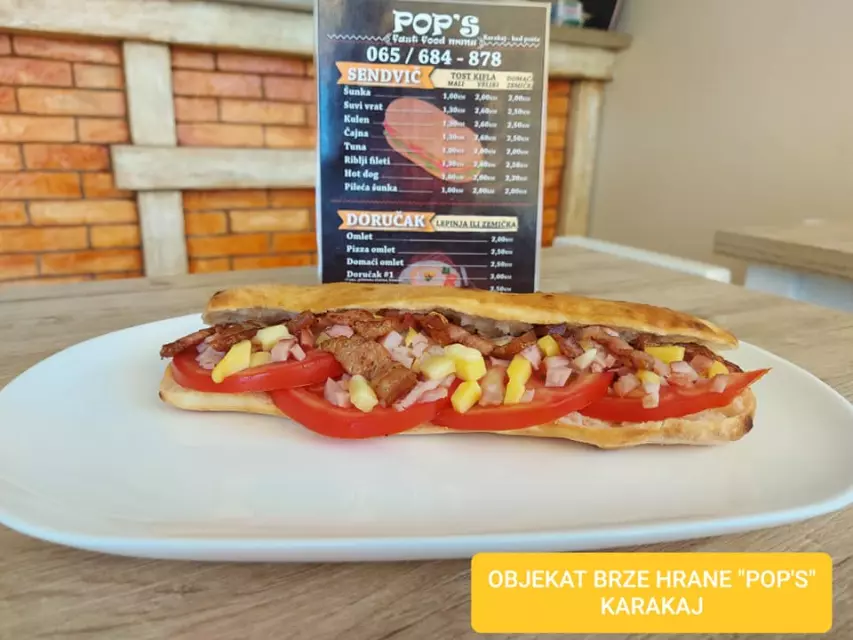 Fast Food Pop's nudi usluge pripreme brze hrane i dostave. Nalazi se u Zvorniku, na adresi Karakaj.