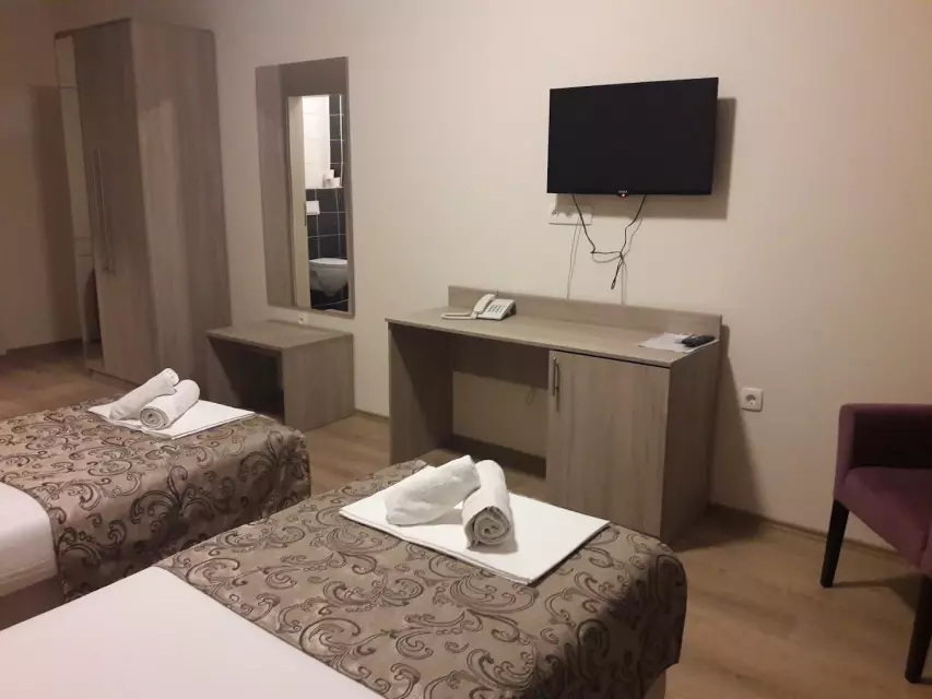 Odličan boravak! Sobe su čiste, udobne i prostrane, a osoblje vrlo ljubazno i susretljivo. Hrana je ukusna i obilna, a atmosfera mirna i ugodna