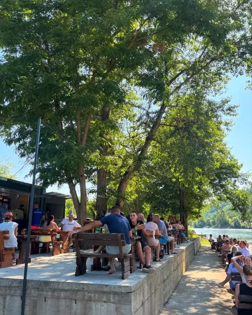 Kafić uz vodu je idealno mjesto za uživanje u okusnim napicima i lokalnim delicijama, uz predivan pogled na rijeku.